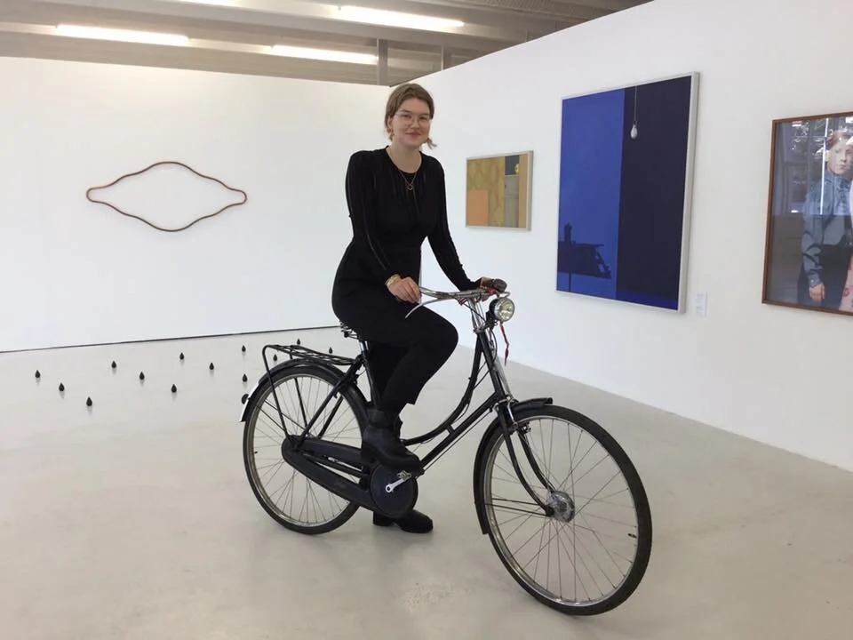 Lørdag 23. september kl. 14 vil Frida holde en omvisning på sykkel gjennom Skulpturløypen langs Store Lungegårdsvann. Møt opp i Kunstgarasjen kl.14 med egen sykkel eller benytt gjerne Bysyklene.